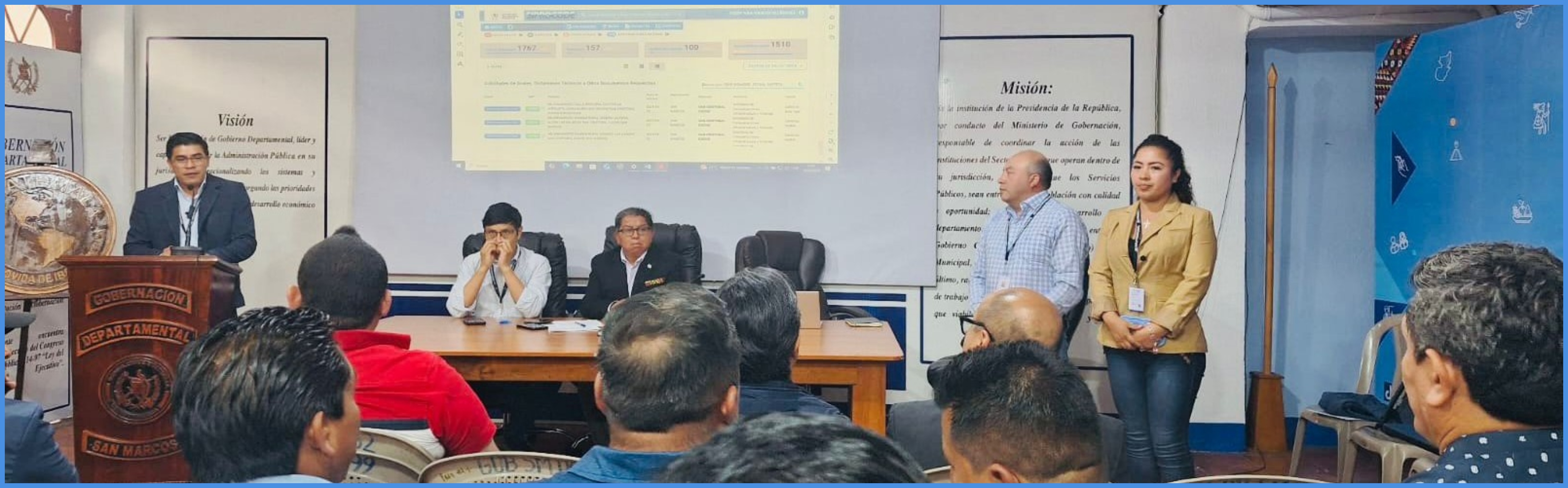 Noticia: Los promotores sociales del Consejo Regional de Desarrollo Urbano y Rural Región Suroccidente: Ilsy Arreaga y Manuel Rodríguez, son presentados por el Director Ejecutivo del Consejo Departamental de Desarrollo de San Marcos, en la reunión del -CODEDE- como los nuevos integrantes del departamento de Promoción Social del -COREDUR- Región Suroccidente.