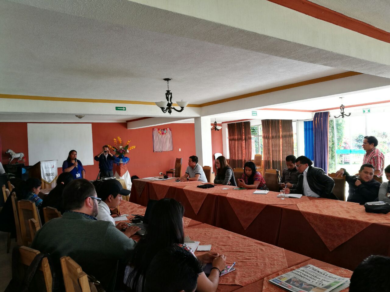 Noticia: Se desarrolló una reunión con extensionistas del Ministerio de Agricultura, Ganadería y Alimentación, así como a personal del Ministerio de Desarrollo, para dar a conoce la Política Nacional de Desarrollo Rural Integral, por parte de los promotores sociales del Coredur región Suroccidente, Virginia Chocoj y Erick Arreaga. También se dio a conocer los proyectos de cada institución y como enfocar los proyectos a la Pndri